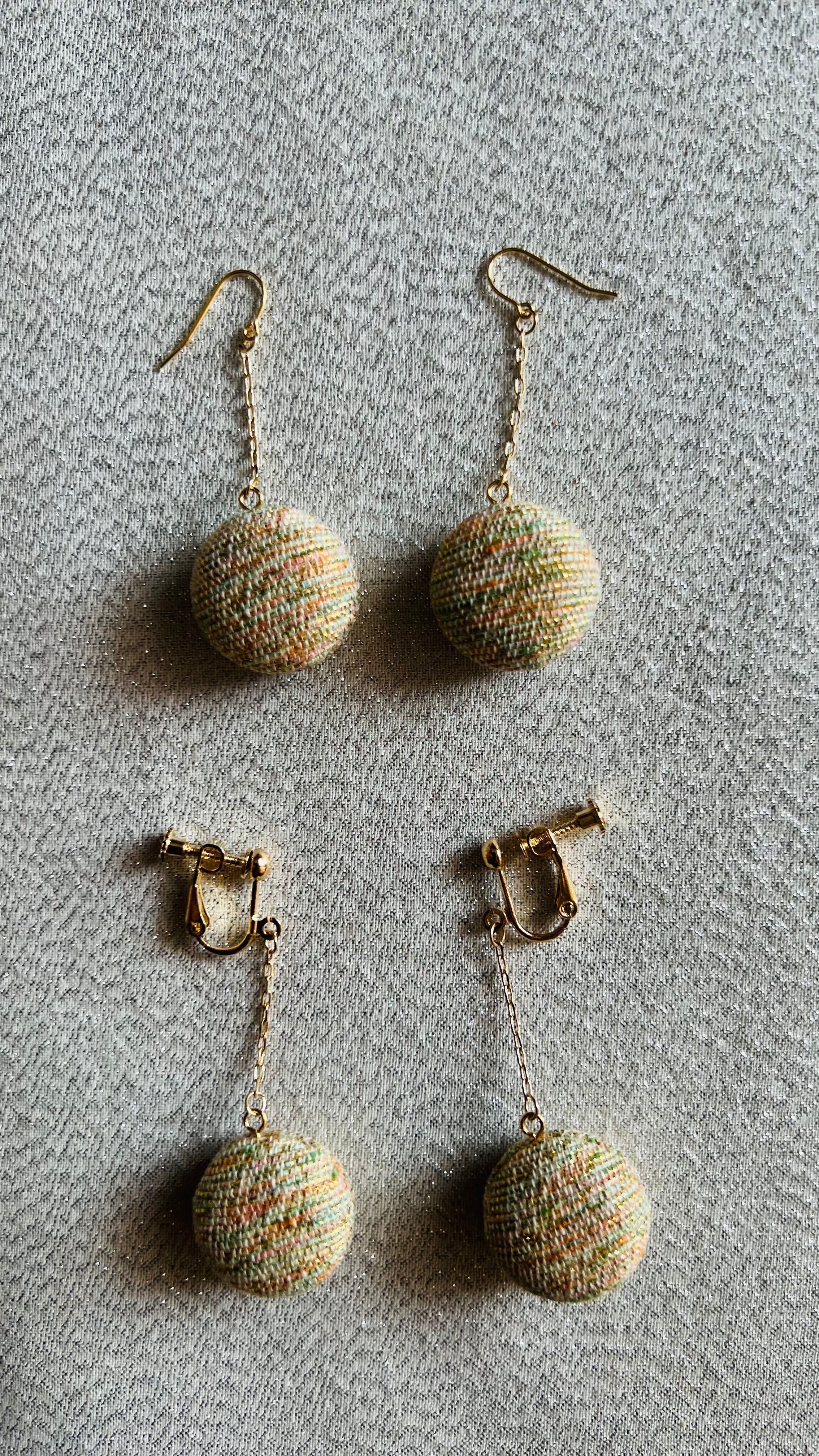 伝統的な和泉木綿を使用した手作りイヤリング。両面生地を使用したパーツには、高級感のある金糸が施されており、身に着けるたびにその特別な質感や温もりを感じることができます。特別な日や日常使いまで、どんなシーンでも魅力を引き立てる洗練されたアイテムです。