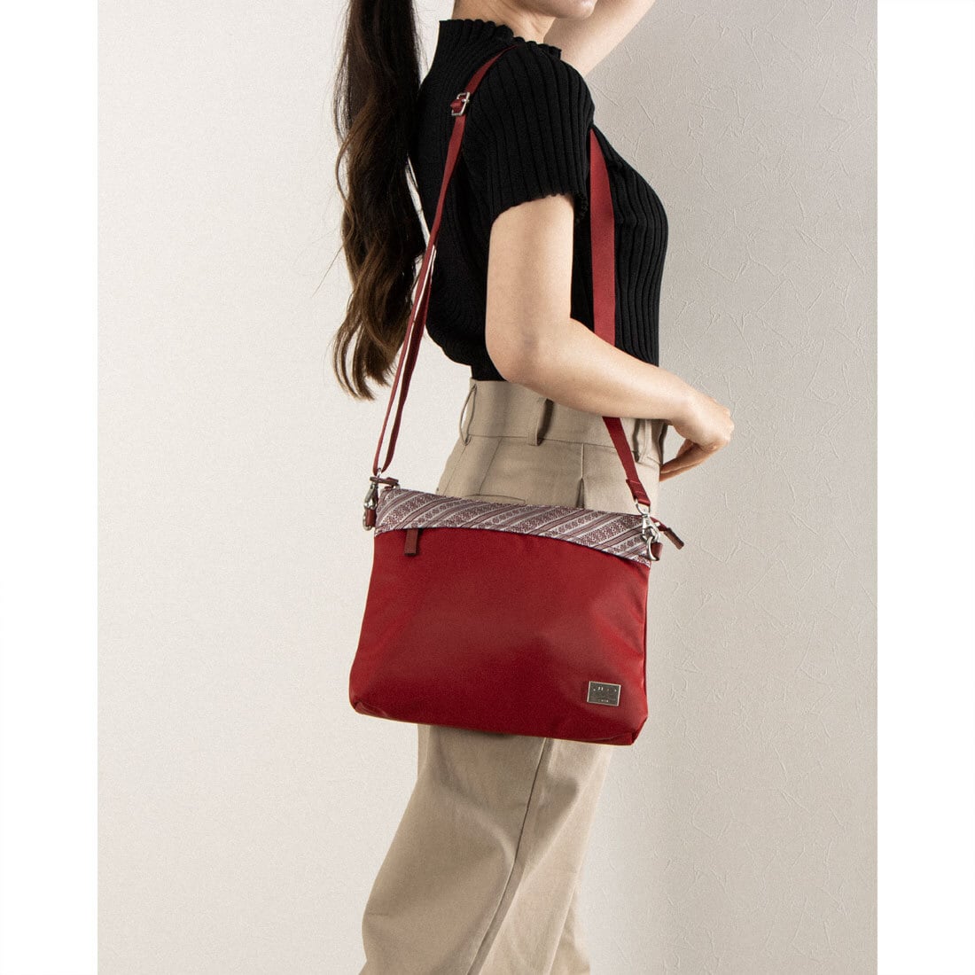 ミニマムなおでかけやトラベルシーンにぴったりの、ジャストサイズが嬉しいクロスボディショルダーバッグ。痒い所に手が届くポケット仕様や、さりげなく配した博多織【斜め献上柄】がカジュアルかつ上質感を醸し出します。